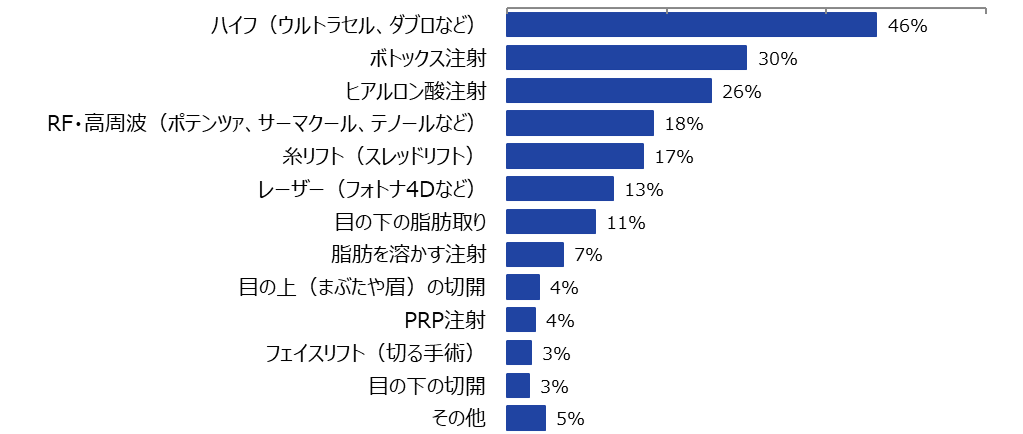 【調査対象】首都圏(埼玉、千葉、東京、神奈川)に居住する20代~60代女性でこの1年以内に、美容皮膚科/美容クリニックで、スキンケア施術を受けられた方